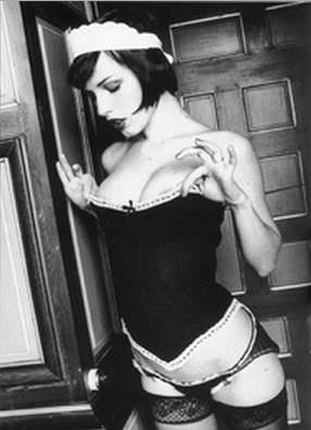 I am a servant in black and white dress and stockings. I brought the tray in and as I did so Hugh shut and locked us all in the library.